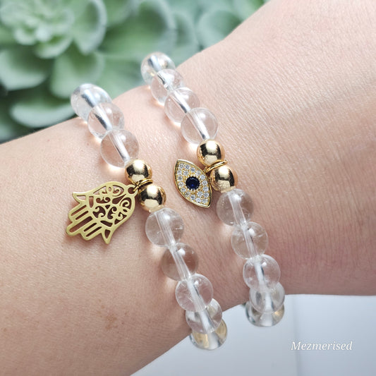 8mm A Grade Clear Quartz Bracelet | Gold or Silver