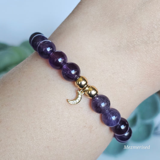10mm Faceted Amethyst Bracelet | Gold or Silver