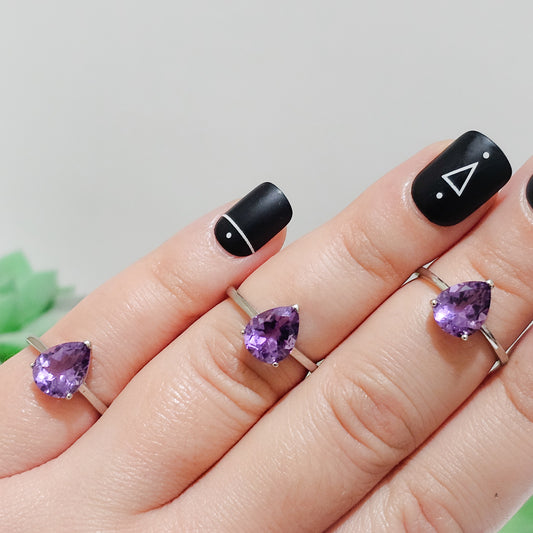 Amethyst Teardrop 925 Silver Adjustable Ring