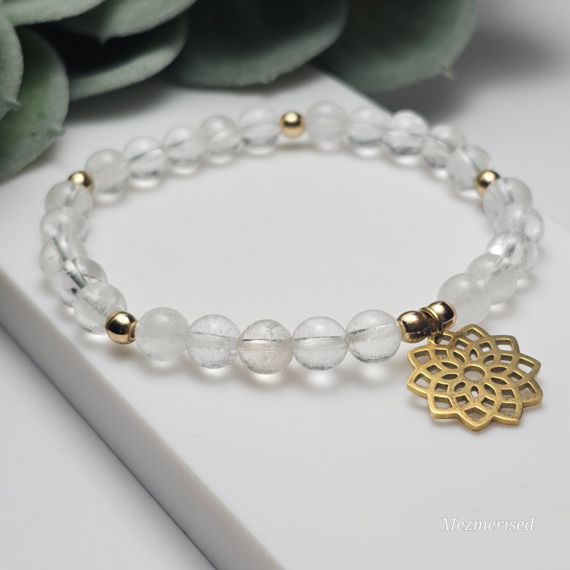 6mm A Grade Clear Quartz Bracelet | Gold or Silver