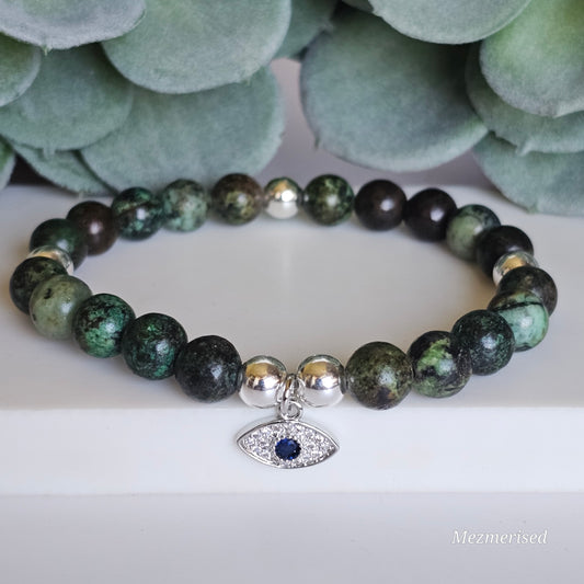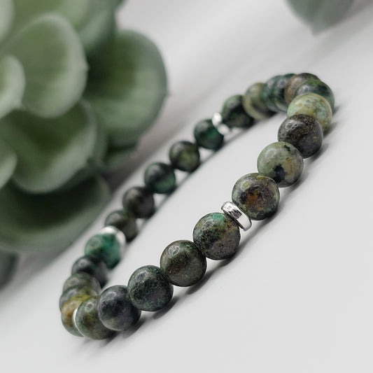 8mm African Turquoise Bracelet | Gold or Silver