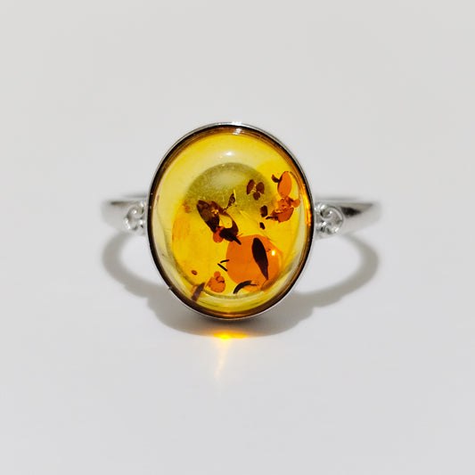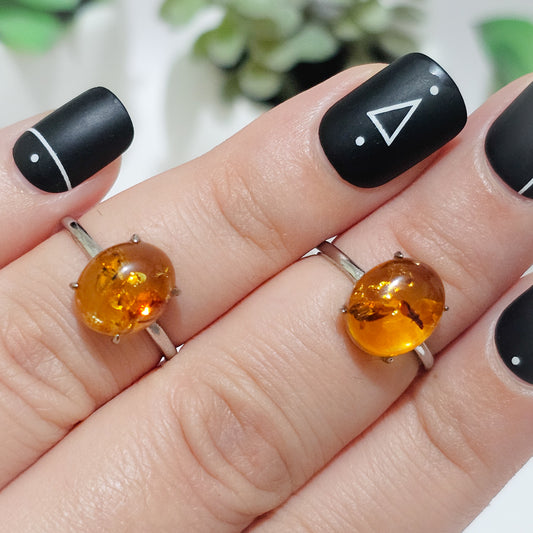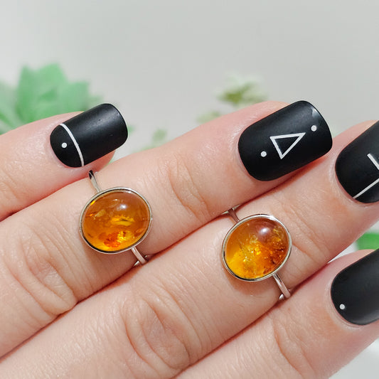 Amber 925 Silver Adjustable Ring