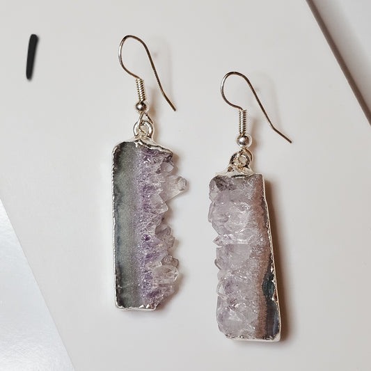 Amethyst Stalactite Sterling Silver Plated Hypo-Allergenic Earrings