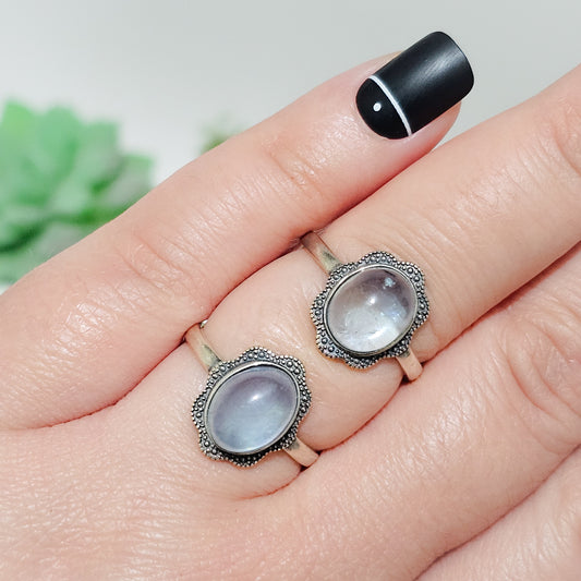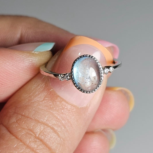 Aquamarine & Zircon 925 Silver Adjustable Ring