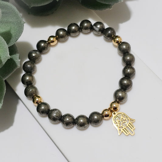 8mm A Grade Pyrite Bracelet | Gold or Silver
