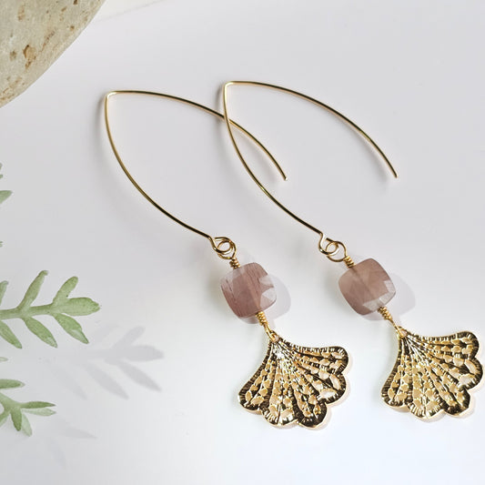 Chocolate Moonstone Fan Earrings