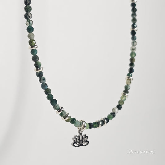 Moss Agate Lotus Necklace