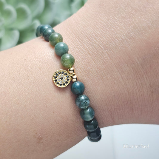 6mm Moss Agate Bracelet | Gold or Silver