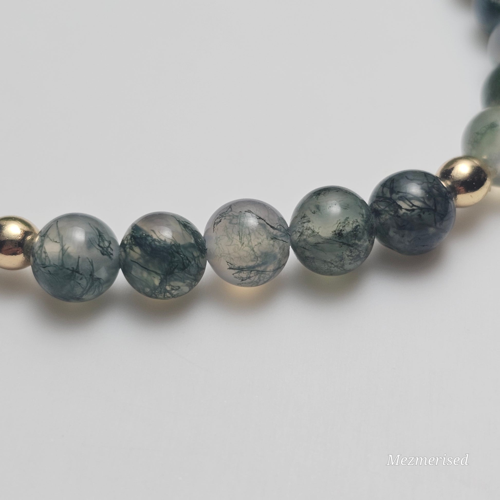 6mm A Grade Moss Agate Bracelet | Gold or Silver