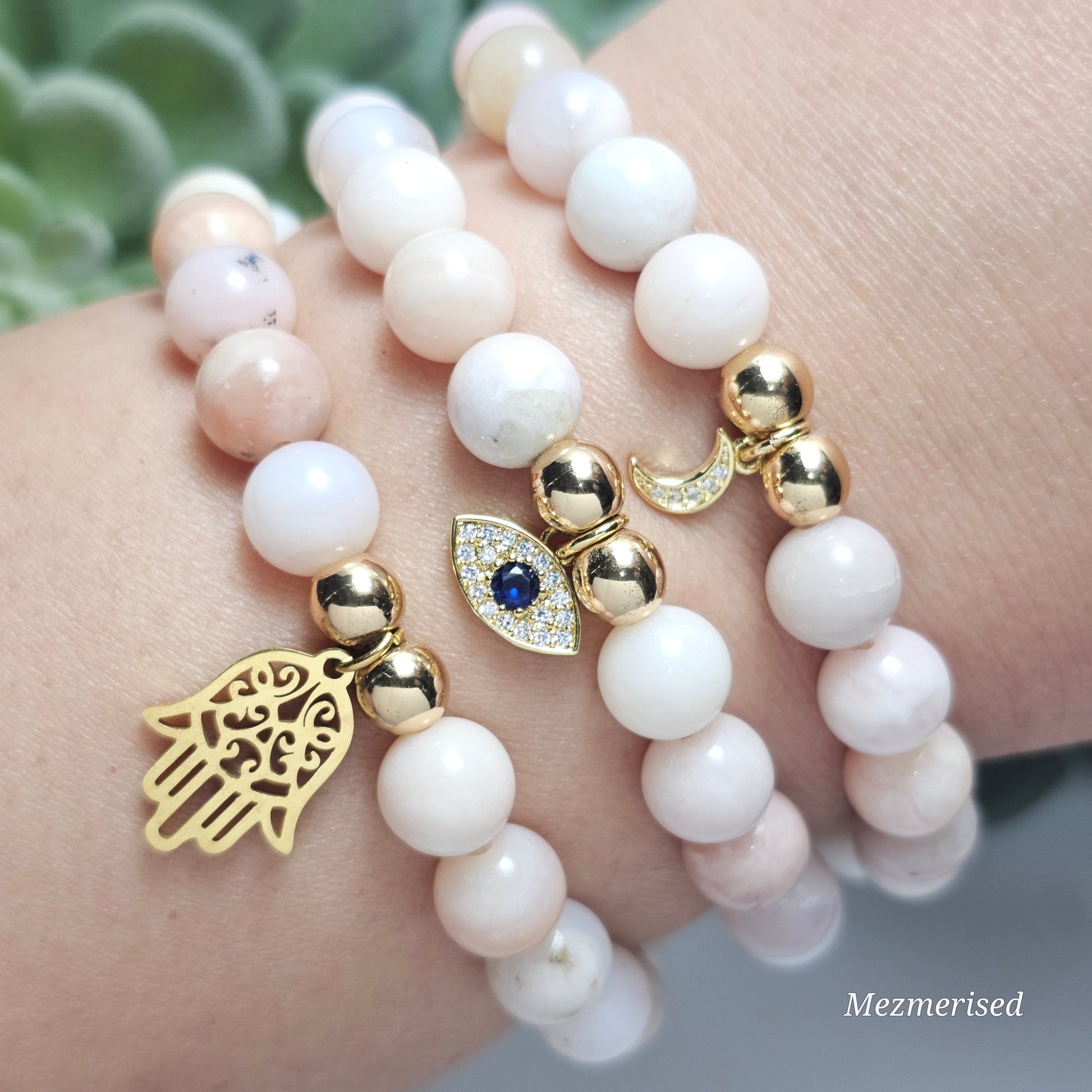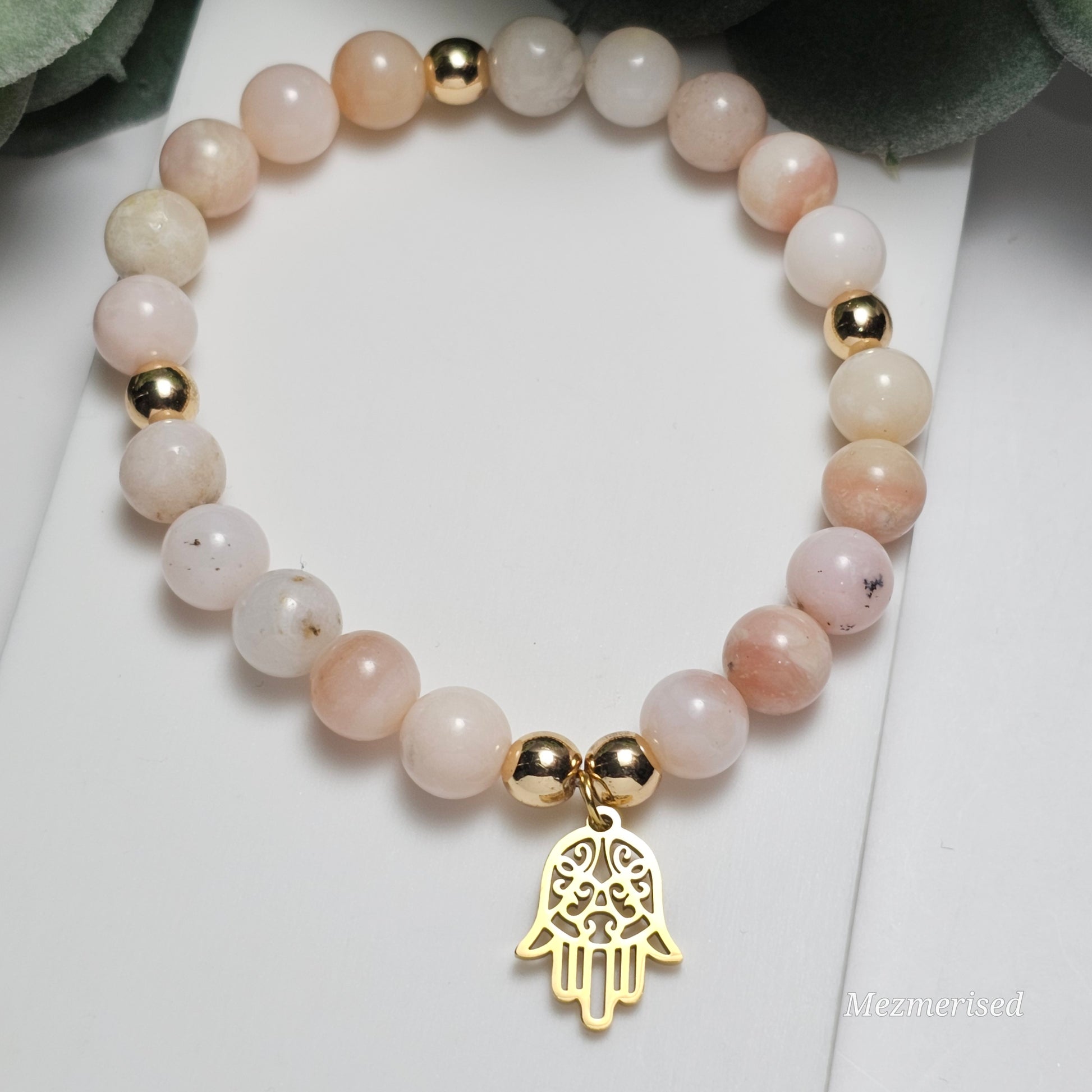 8mm Pink Opal Bracelet | Gold or Silver