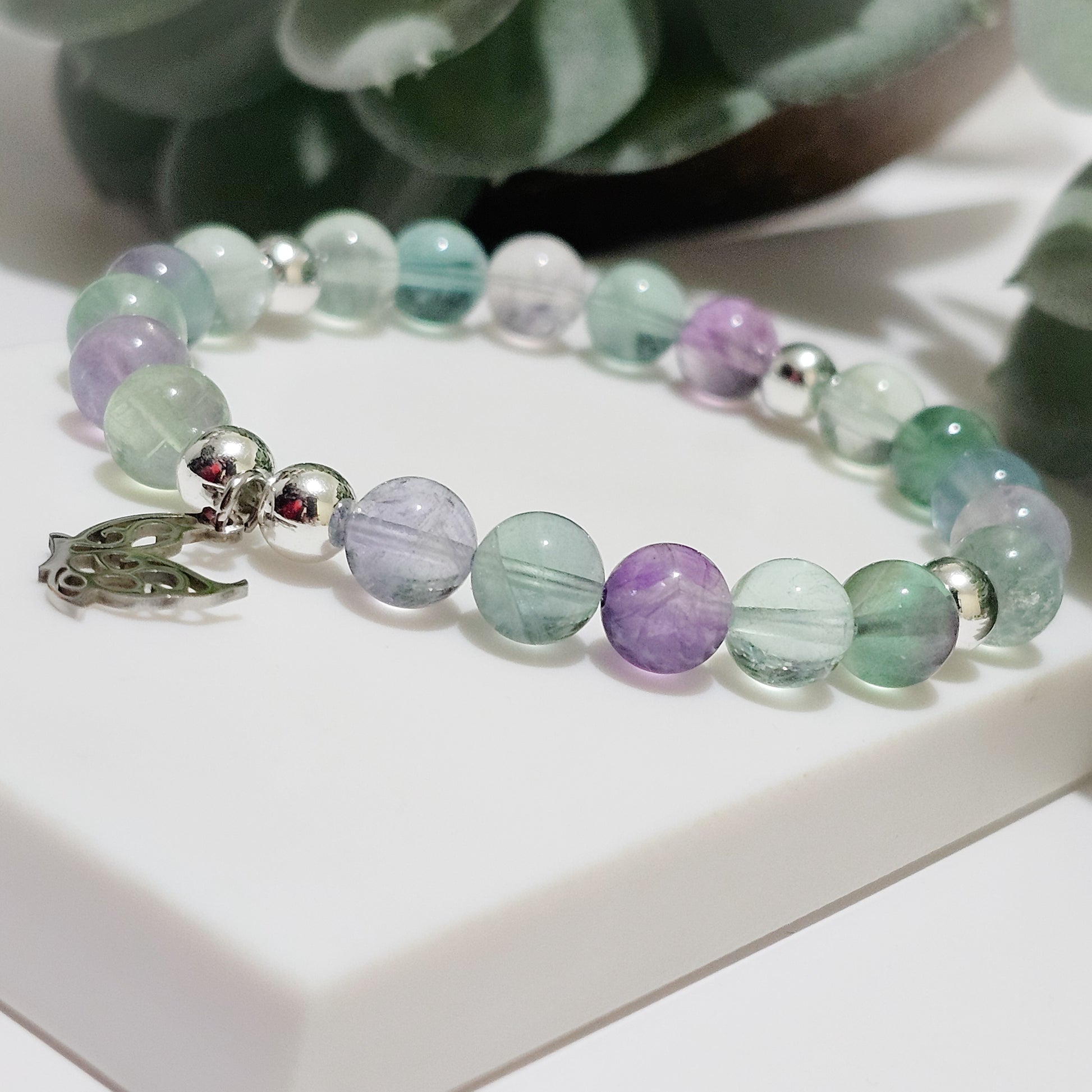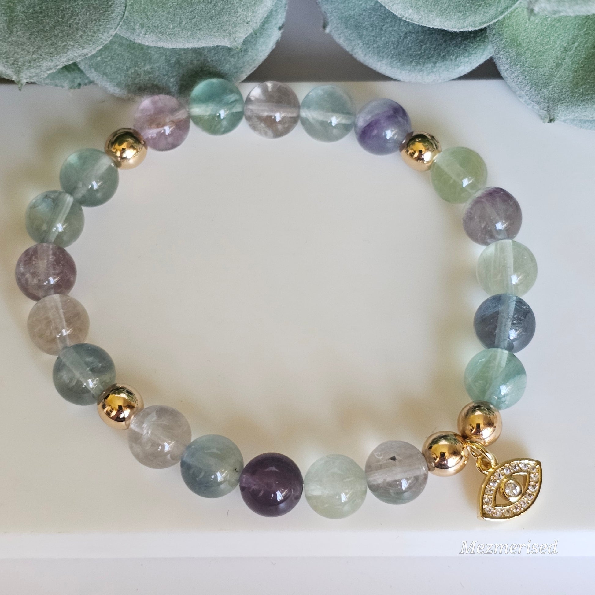 8mm A Grade Fluorite Bracelet | Gold or Silver