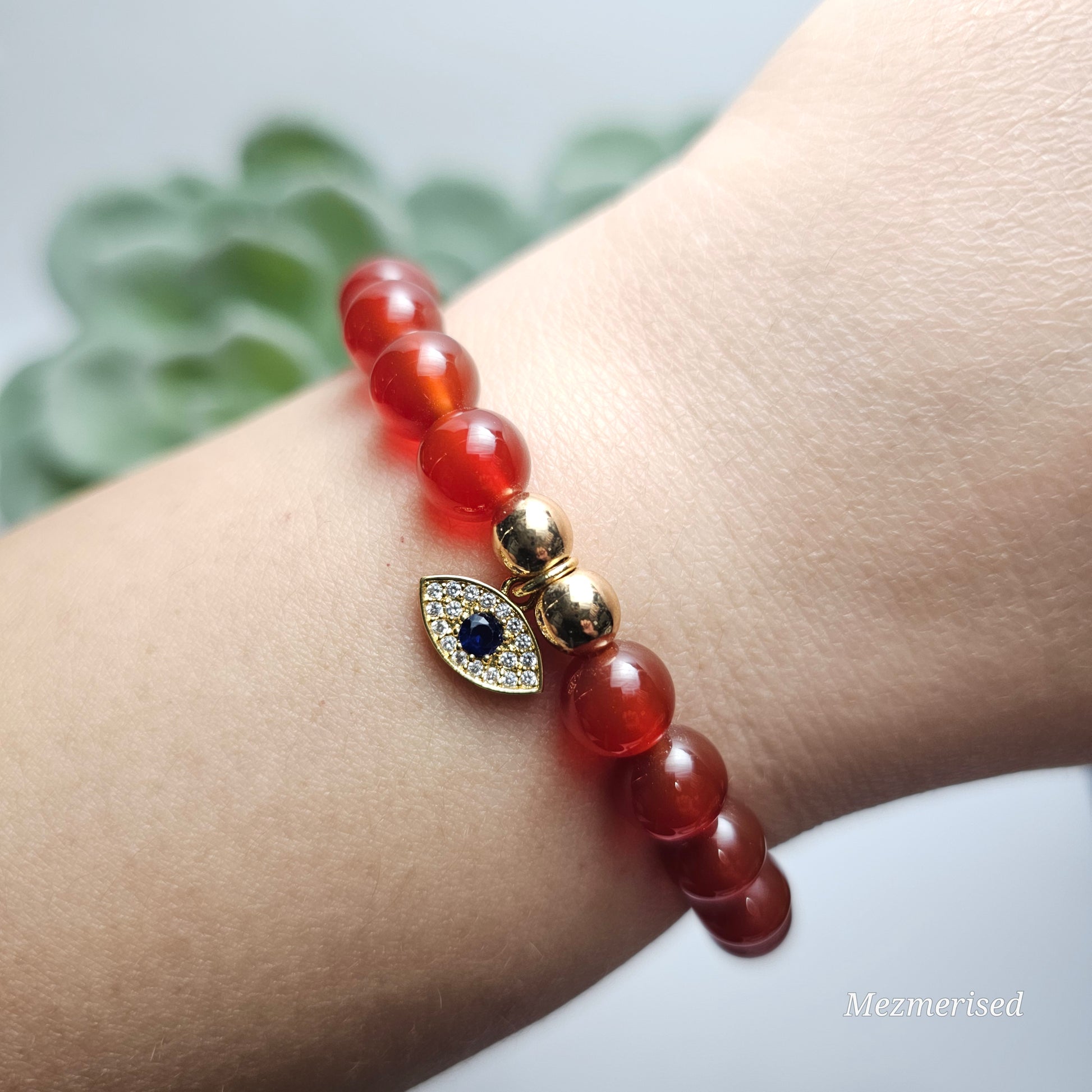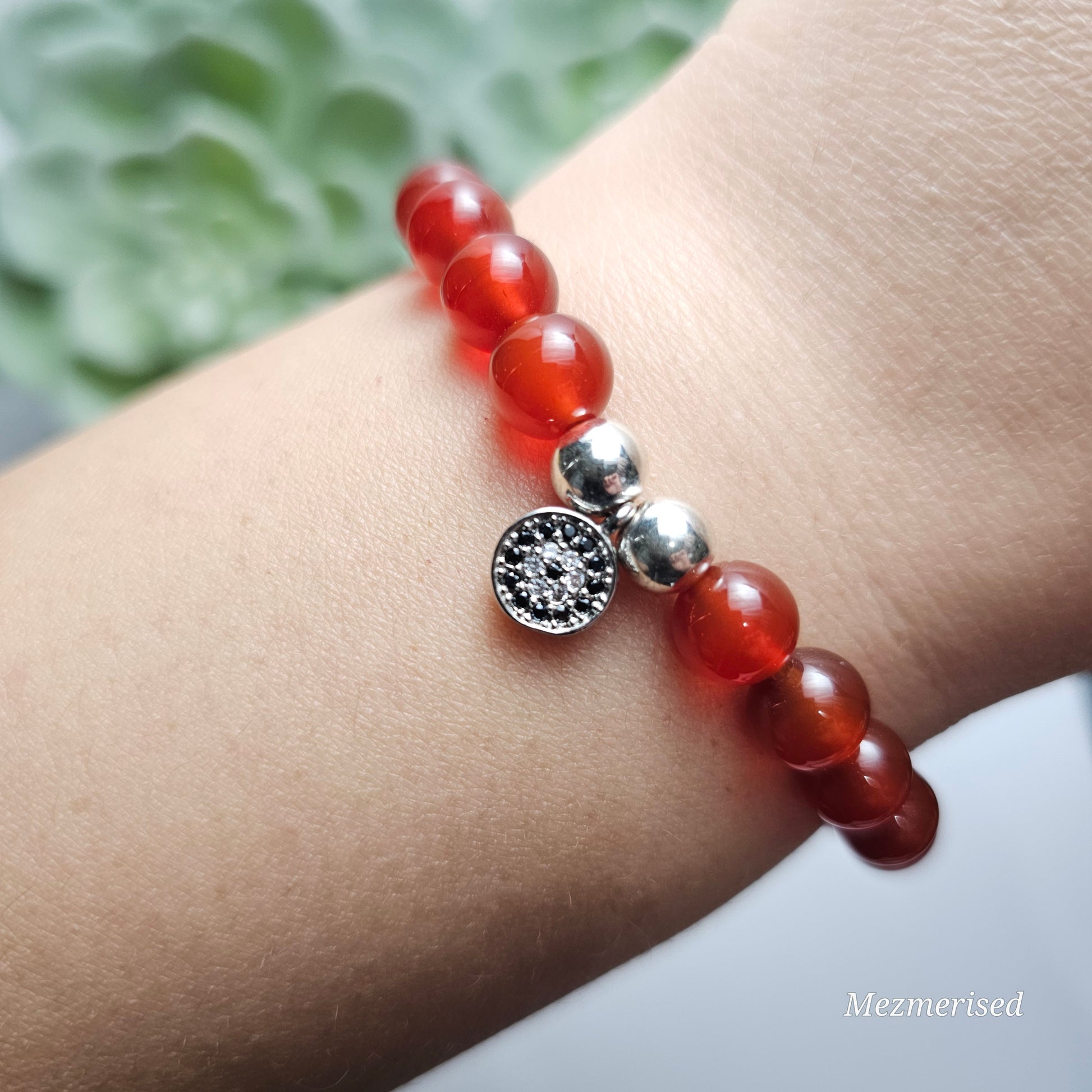 8mm A Grade Carnelian Bracelet | Gold or Silver (Dyed)