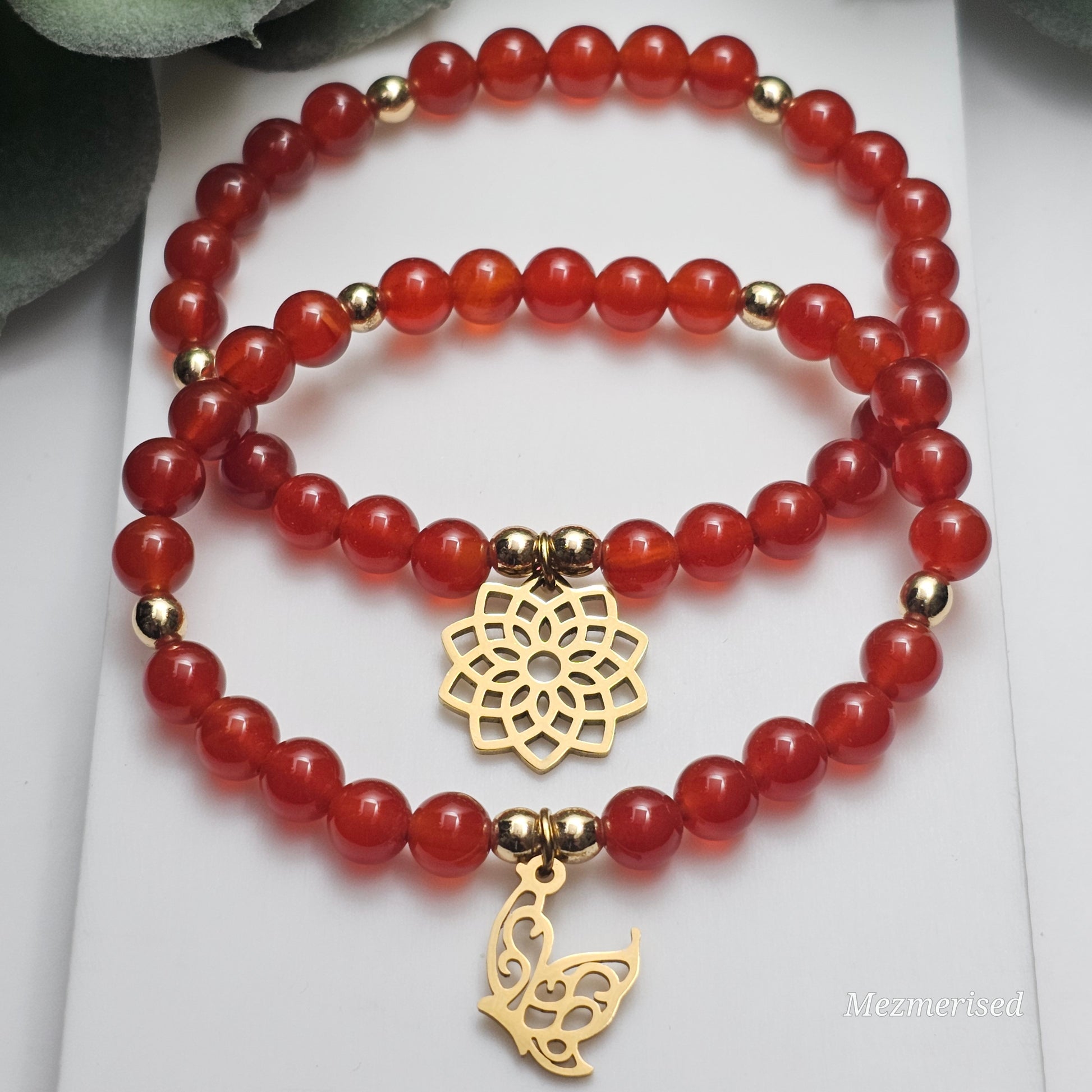 6mm A Grade Carnelian Bracelet | Gold or Silver