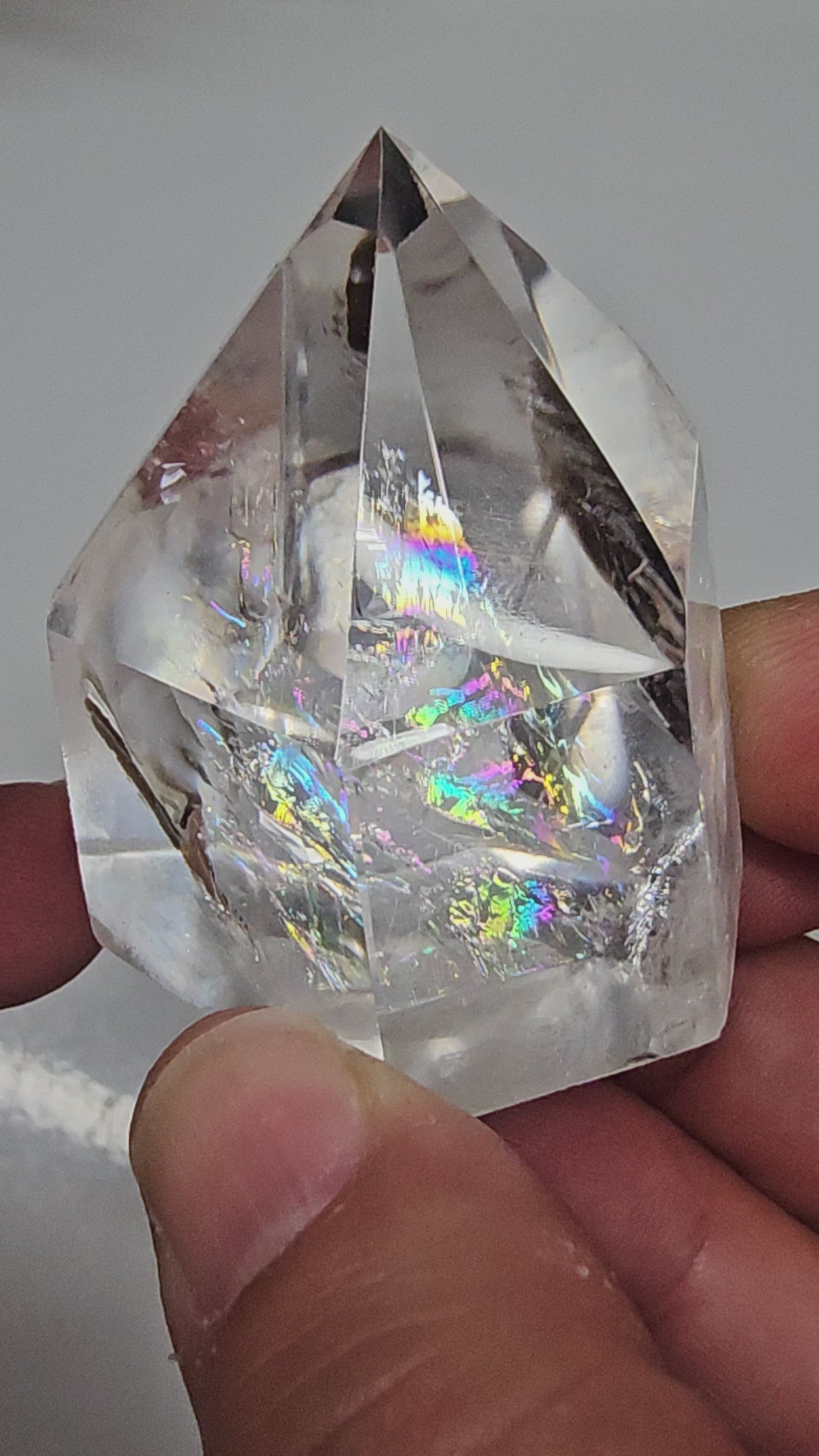 Beautiful quality Clear Quartz tower with rainbow.