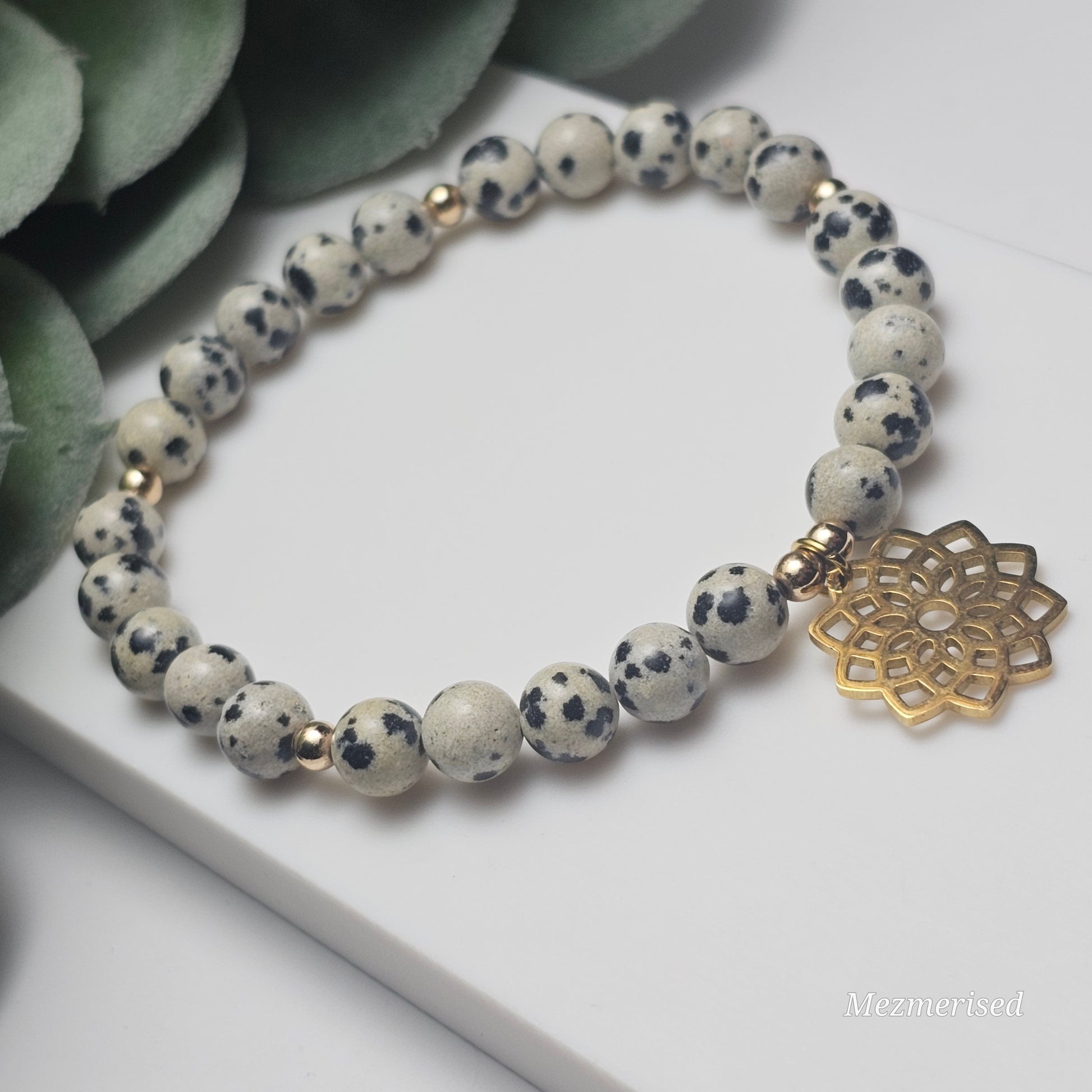 6mm Dalmatian Jasper Bracelet | Gold or Silver